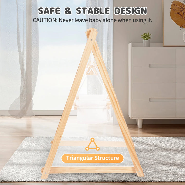 Modern playtime often overstimulates babies with noise, flashing lights, or rigid seating that restricts movement. The Wooden Baby Swing creates the opposite experience – a calm, rhythmic, soothing motion that mirrors the natural rocking that babies instinctively respond to.